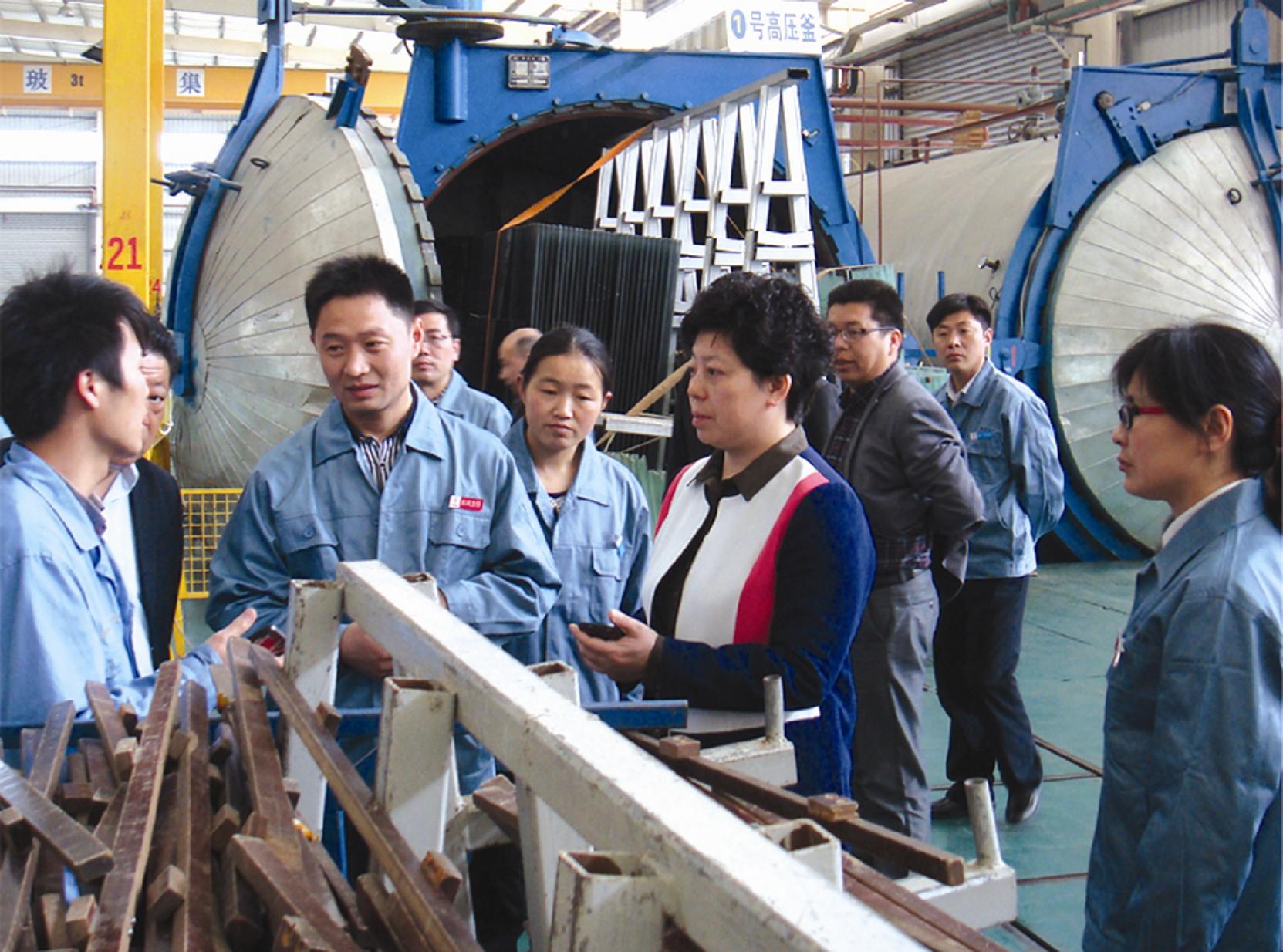 洪總與吳江南玻夾層線技術(shù)人員探討生產(chǎn)工藝