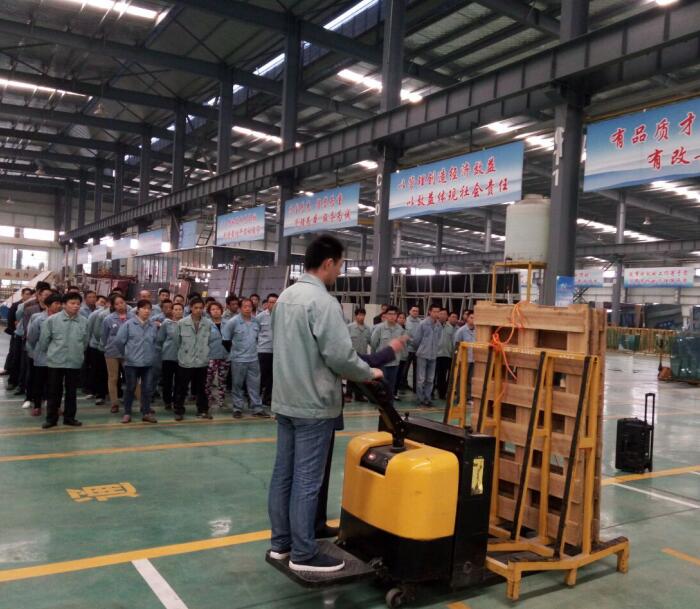 5月19日,23日,切割班組和鋼化車間相繼因人為因素發生玻璃倒架事故,安 全事故的發生,牽扯著每個福坤人的心!在23日召開的現場安 全教育會議上,公司通過現場演示,措施宣講,對大家進行了一次現場教育,讓每個員工時刻繃緊安 全生產這根弦,對怎樣安 全使用電動液壓車有了直接的認識,痛定思痛之余,公司意識到:除了用事實教育人,更要用制度完善事,多措并舉才能筑牢安 全防護罩。
